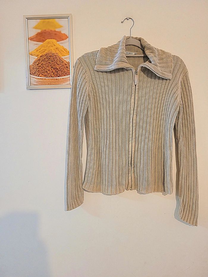 Gilet à tirette beige "okaidi" taille 12 ans - photo numéro 1