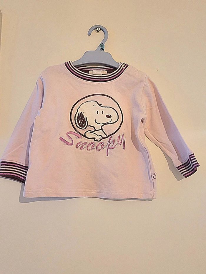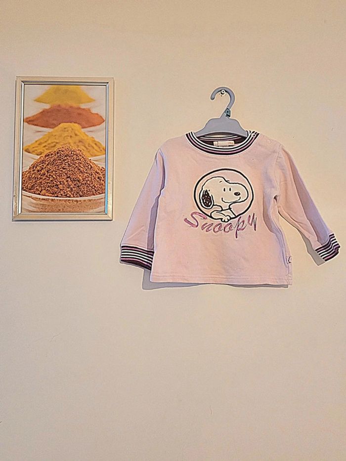 Pull snoopy rose pâle H&M taille 9 mois - photo numéro 1