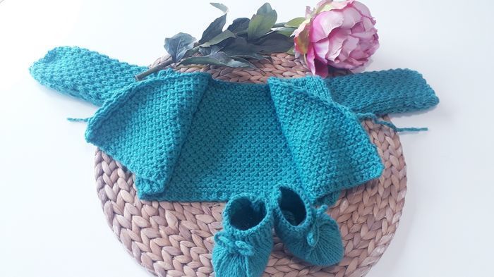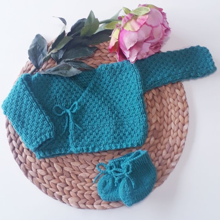 Ce modèle est prévu pour la sortie de maternité, mais si vous souhaitez faire une taille plus grande n'hésitez pas à me le demander 😉. Possibilité de faire d'autres couleurs. Composition : - 30% laine - 50% polyamide - 20% acrylique Entretien facile : - Programme laine (30°c) - Essorage doux 400 tr/min - Pas de sèche linge ni repassage