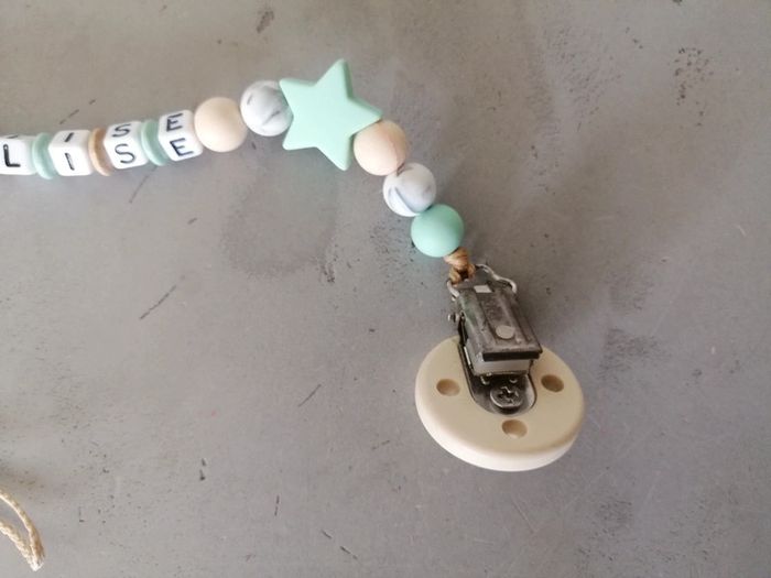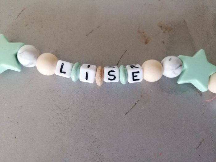 Bonjour, Je vends un attaché sucette avec le prénom "Lise" en très bon état. N'hésitez pas à regarder mes autres annonces, je peux faire des lots si ça vous intéresse. Et pensez à vous abonner, de nombreuses autres annonces vont être postées pour fille et garçon.