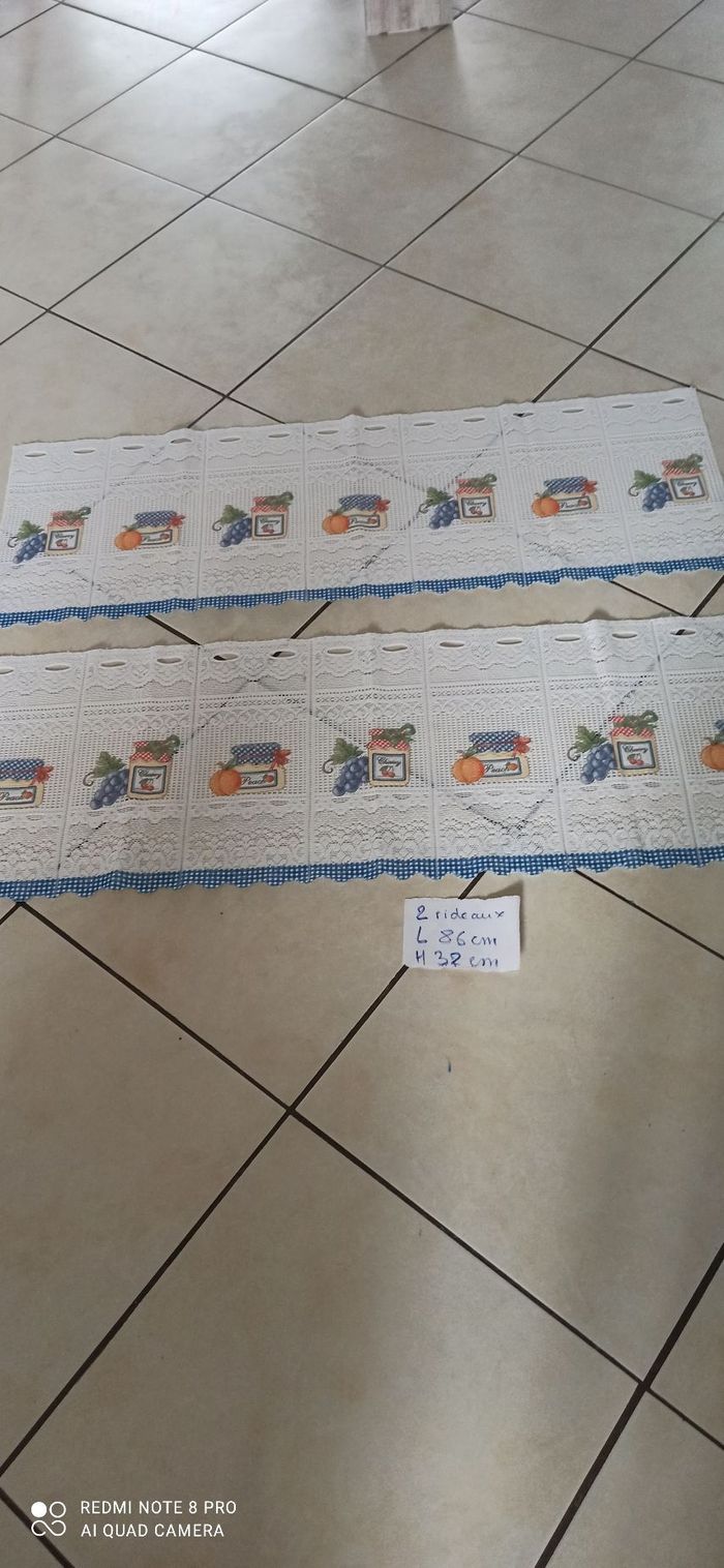 Vends 2 rideaux motifs pots, de confiture l 86 cm h 32 cm