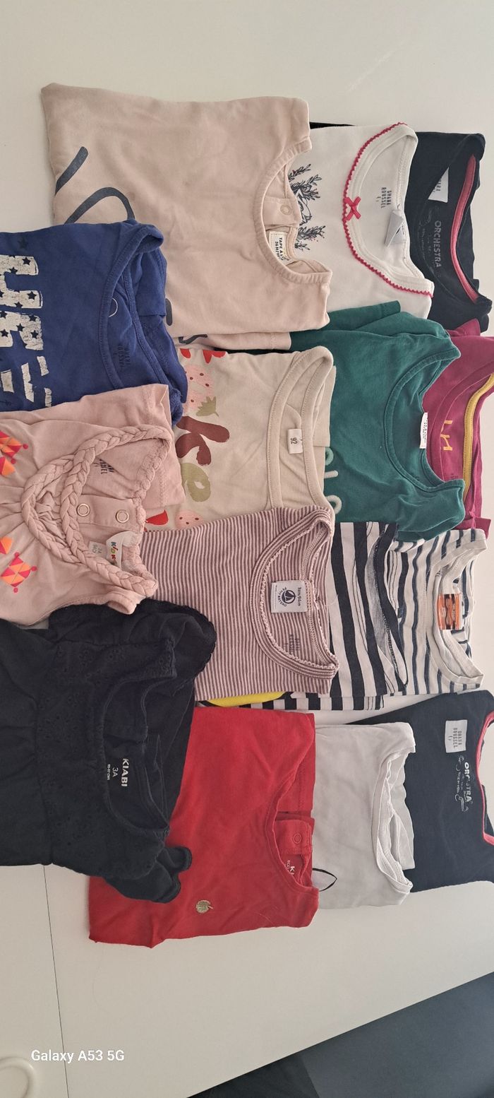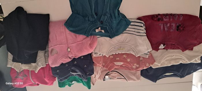 Bonjour Vend lot fille printemps été 3ans/36mois En bon état générale (une 10zaine présente un défaut) 69 articles 23 hauts manches courtes 3 chemisiers 3jupes 2short 2 pantacourts 9robes 4jeans 3leggins 2 robe cérémonie 9culottes 6pulls 7 gilets 1 ensemble 3 pyjama léger pantalons 4 pyjama shorts 1 veste 1 combi short 65€ ( environs 0.80 cts l'article)