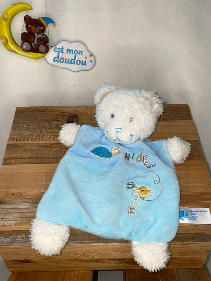 🌺 Bonjour, vendeuse professionnelle 🌺 🛍 Je vous offre les frais d’envois pour 2 articles achetés 🛍 (Contactez moi pour créer un lot) Je vous propose le Doudou suivant : Marque : Tex Genre : ours Format : plat Coloris : bleu Motifs/Broderies ou plus : tortue, poussin Hide and seek État d’occasion : bon (petit défaut) Stock : 1 RÉFÉRENCE : TEX186 ➡️Pour plus de modèles, cliquez ici : #tex_cestmondoudou ⭐️ La décoration (boîte...) n'est pas vendu avec le doudou ⭐️