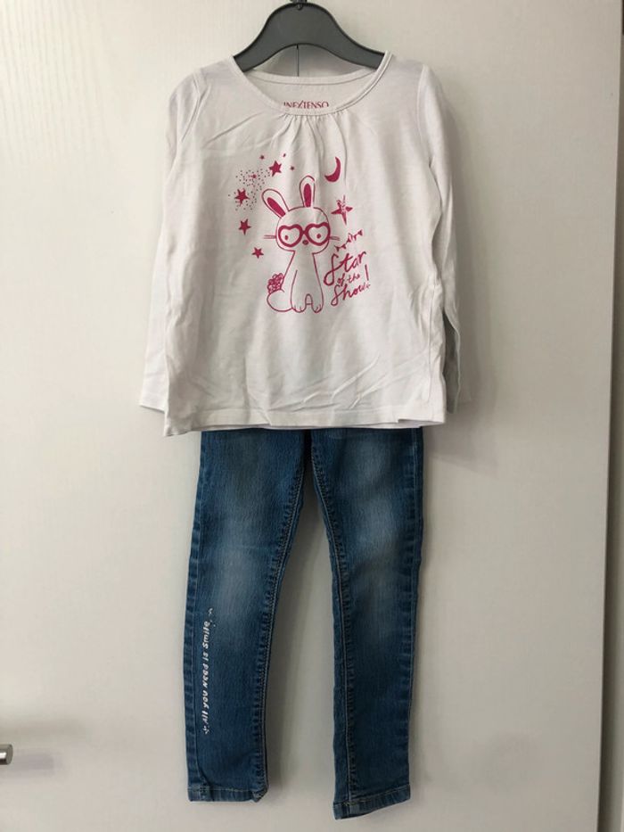 Ensemble fille composé d'un haut manches longues motif lapin et d'un jean skinny, élastiqué à la taille Marque In Extenso Taille 3 ans, 98cm #ensemble #fille #inextenso #lapin