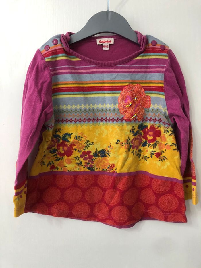 Joli haut fille manches longues aux belles couleurs Motifs floraux Marque Catimini Taille 18 mois, 81 cm Haut bien porté #haut #catimini #fleur