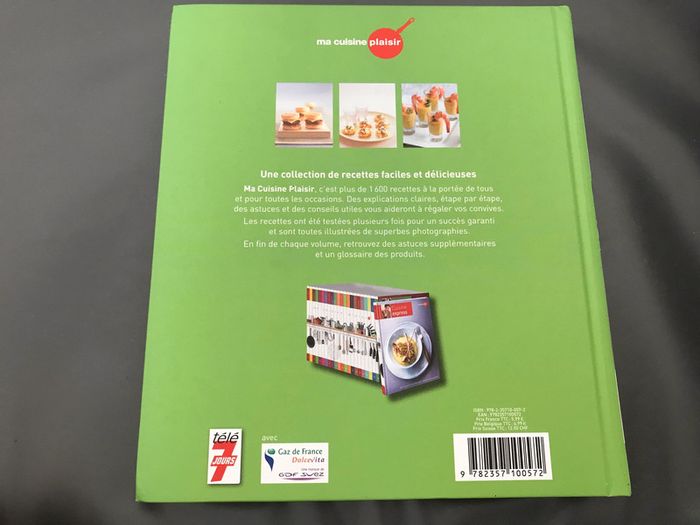Livre de cuisine, Apéros et bouchées Auteur(s) : Collectif Editeur : Hachette Collection : Ma cuisine plaisir Langue : Français Nombre de pages : 139 Ma cuisine plaisir, c'est plus de 1600 recettes à la portée de tous et pour toutes les occasions. Des explications claires, étape par étape, des astuces et des conseils utiles vous aideront à régaler vos convives. Couverture légèrement abîmée à l'avant #livre #cuisine #plaisir #apéro #bouchée