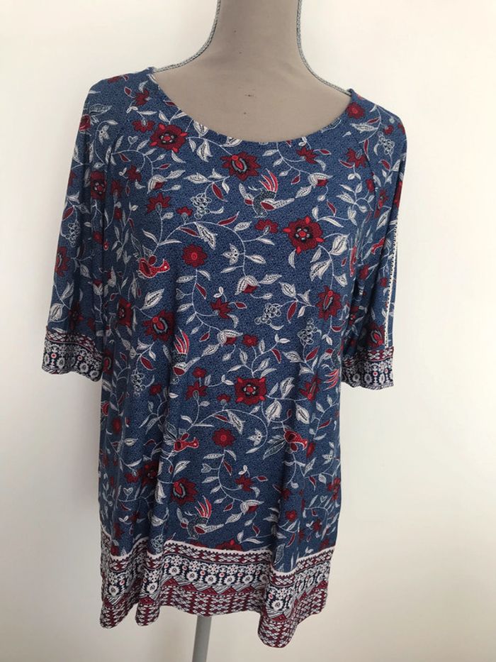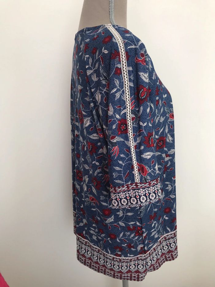 Joli haut femme manches 3/4, avec petite dentelle dans les manches Léger et agréable à porter Motif nature Taille 4 Aisselles: environ 51cm Longueur: environ 68cm #haut #femme