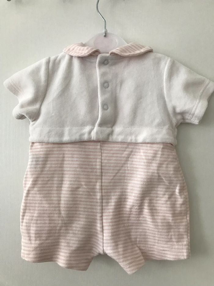 Jolie combishort bébé fille, idéale pour l'été Se ferme à l'arrière et entre les jambes Joli motif girafe à l'avant Marque Prémaman Taille 3 mois, 62cm #combishort #bébé #fille #girafe