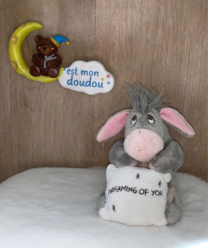 🌺 Bonjour, vendeuse professionnelle 🌺 🛍 Je vous offre les frais d’envois pour 2 articles achetés 🛍 (Contactez moi pour créer un lot) Je vous propose le Doudou suivant : Marque : Disneyland Genre : âne bourriquet Format : peluche Mesure : 15cm Coloris principals : gris Motifs/Broderies ou plus : oreiller blanc brodé "dreaming of you" État d’occasion : très bon Stock : 1 RÉFÉRENCE : DY210 #disney_cestmondoudou ⭐️ La décoration (boîte...) n'est pas vendu avec le doudou ⭐️