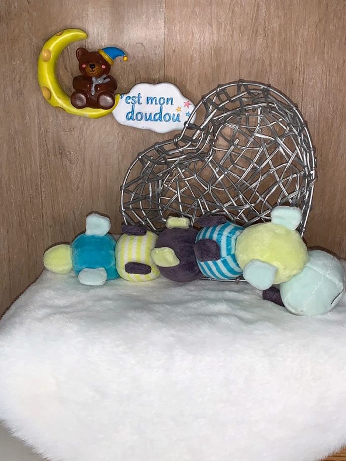 🌺 Bonjour, vendeuse professionnelle 🌺 Je vous propose le Doudou suivant : Marque : OBAIBI Genre : chenille Format : peluche Mesures : 26cm Coloris principals : gris,vert, bleu Motifs/Broderies ou plus : grelot État d’occasion : très bon Stock : 2 RÉFÉRENCE : OB74 #obaibi_cestmondoudou ⭐️ La décoration (boîte...) n'est pas vendu avec le doudou ⭐️