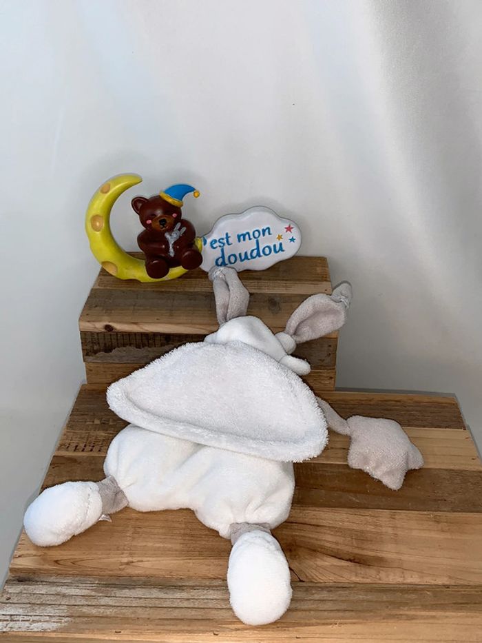 🌺 Bonjour, vendeuse professionnelle 🌺 Je vous propose le Doudou suivant : Marque :doudou et compagnie Collection : céleste et clémentine Genre : lapin Format : peluche Mesures : 18cm Coloris principals : blanc cassé et beige Motifs/Broderies ou plus : cape, étoiles, hochet État d’occasion : très bon Stock : 2 RÉFÉRENCE : #DDC188 #doudouetcompagnie_cestmondoudou ⭐️ La décoration (boîte...) n'est pas vendu avec le doudou ⭐️