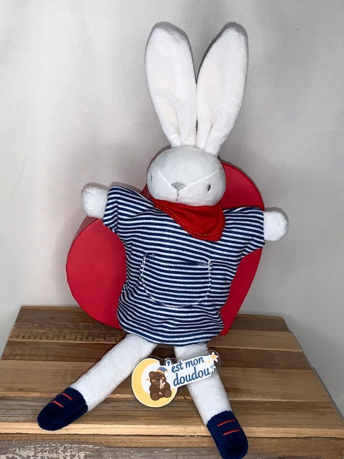 🌺 Bonjour, vendeuse professionnelle 🌺 Je vous propose le Doudou suivant : Marque : sergent Major Genre : lapin Format : marionnette 27cm sans les oreilles Coloris : blanc, rouge et bleu Motifs/Broderies ou plus : Tenue à rayures avec foulard rouge État : comme neuf Stock : 2 RÉFÉRENCE : SM08 #sergentmajor_cestmondoudou