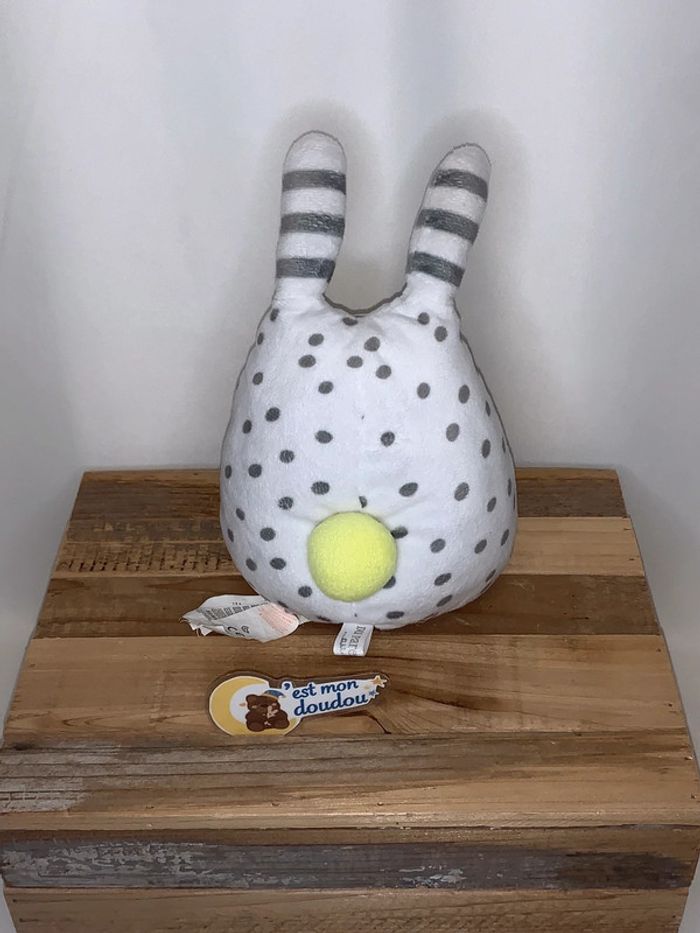 🌺 Bonjour, vendeuse professionnelle 🌺 Je vous propose le Doudou suivant : Marque : du pareil au même Genre : lapin Format : peluche musical 🎶 Mesures : 20cm avec les oreilles Coloris : blanc Motif et + : pois et rayures , musical si ont tire sur la queue État : très bon Stock : 1 RÉFÉRENCE : DP26 #dpam_cestmondoudou #boiteamusique_cestmondoudou