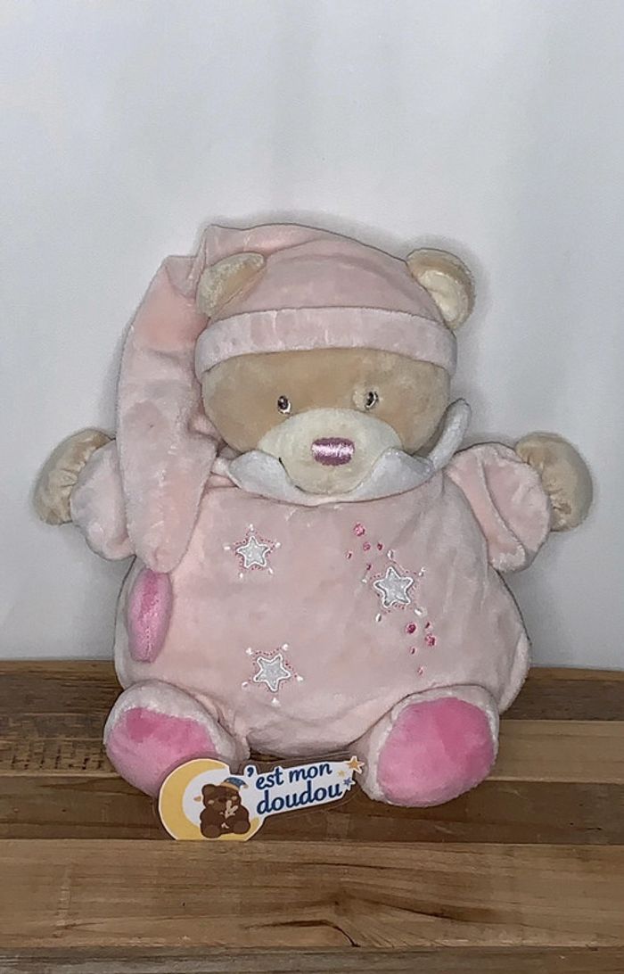 🌺 Bonjour, vendeuse professionnelle 🌺 Je vous propose le Doudou suivant : Marque : NICOTOY. Simba Genre : 🐻 Format : peluche Mesures : 22cm Coloris : rose brodé étoiles blanches et bulles roses État : très bon Stock : 1 RÉFÉRENCE : NIC184 #nicotoy_cestmondoudou