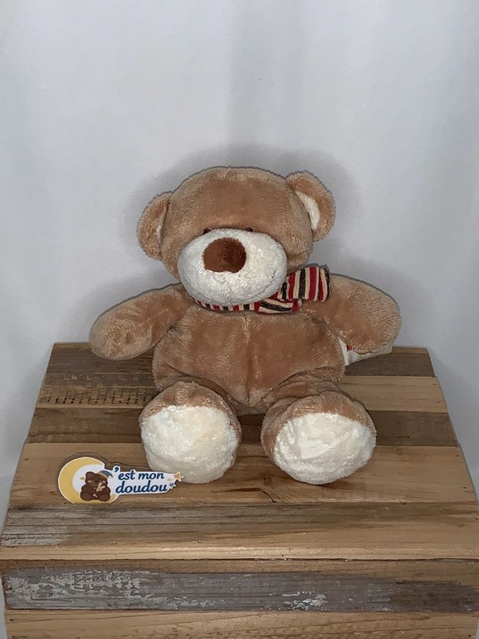 🌺 Bonjour, vendeuse professionnelle 🌺 Je vous propose le Doudou suivant : Marque : nicotoy. Simba Genre : ours Format : peluche Mesures : 25cm Coloris : beige, écharpe rayée État : très bon Stock : 2 RÉFÉRENCE : NIC168 #nicotoy_cestmondoudou