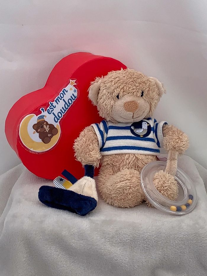 Format : Peluche Genre : ours Coloris : beige, marine Petit plus : hochet Taille : 24cm Marque : Pommette État : très bon Stock :1 RÉFÉRENCE :POM25 #pommette_cestmondoudou