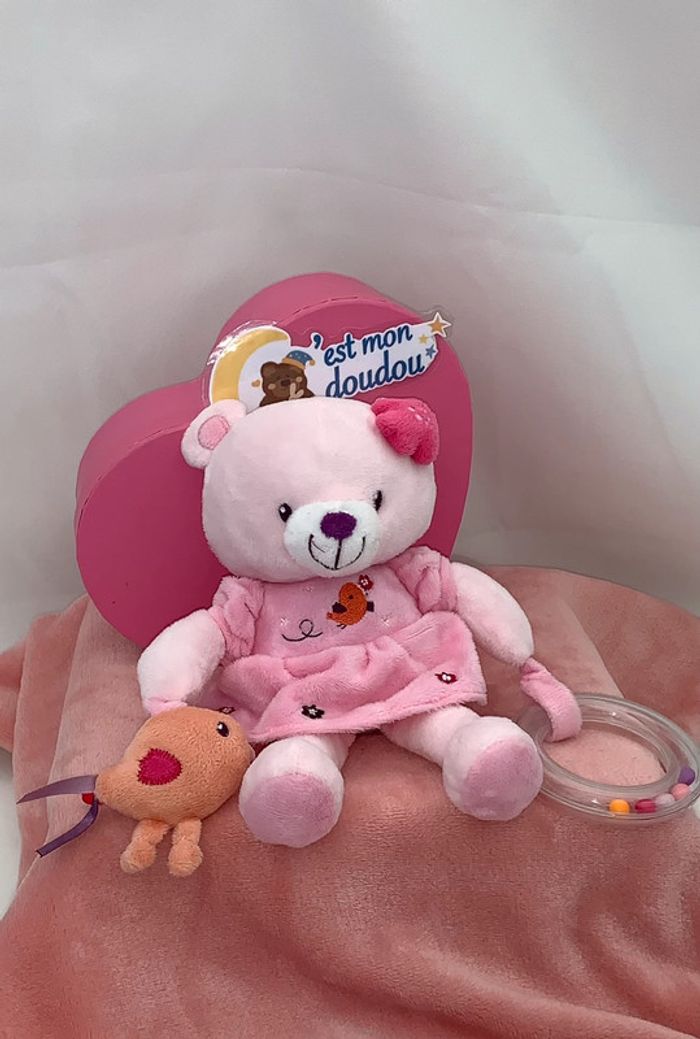 Format : Peluche Genre : ours Coloris : roses Broderie : fleurs, oiseau Taille : 20cm Marque : Pommette État : très bon Petit plus : hochet Stock :2 RÉFÉRENCE :POM24 #pommette_cestmondoudou