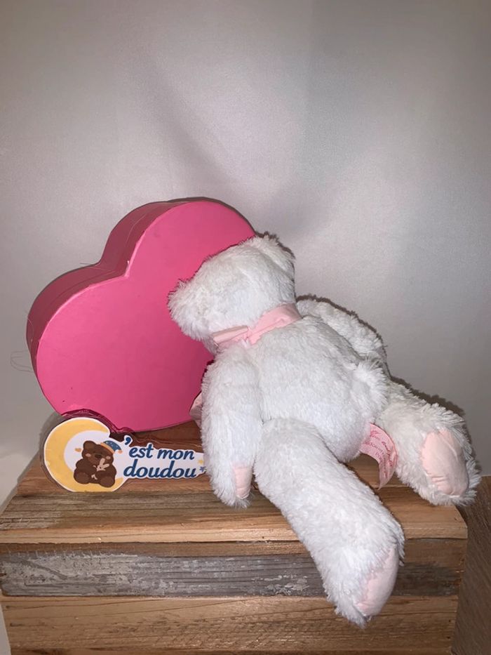 Format : peluche Genre : ours Coloris : blanc, rose Marque :doudou et compagnie Collection : mon tout petit… Mesures : 25cm Etat : très bon Stock :1 RÉFÉRENCE :DDC116 #doudouetcompagnie_cestmondoudou