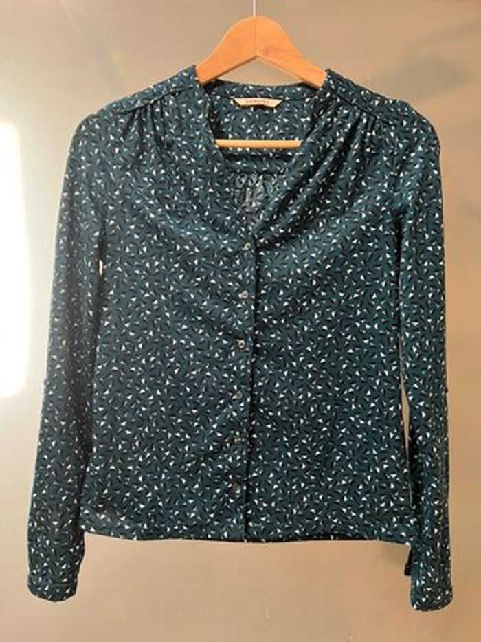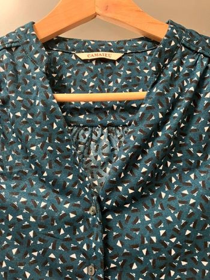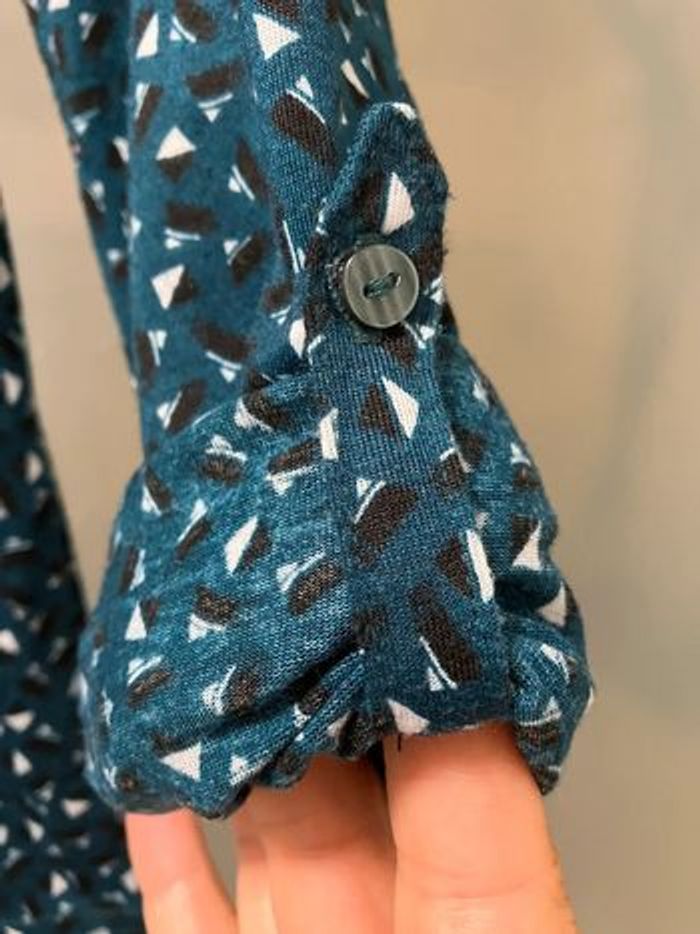 Jolie blouse à manches longues qui se retroussent avec petit col droit. Il n’a aucun défaut.