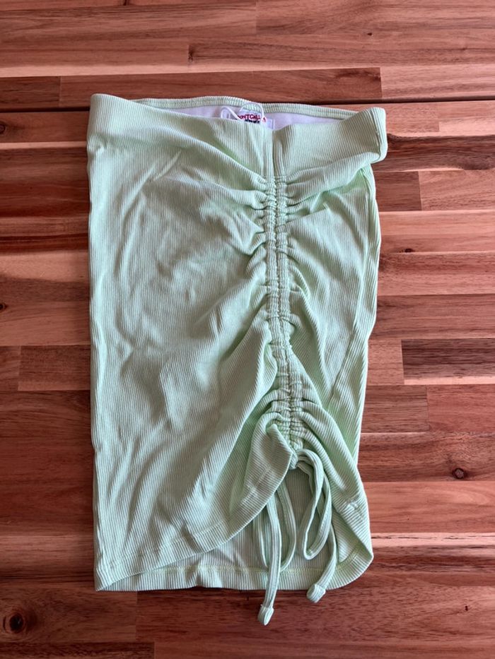 Jupe plissée avec lacet devant. Couleur vert clair.