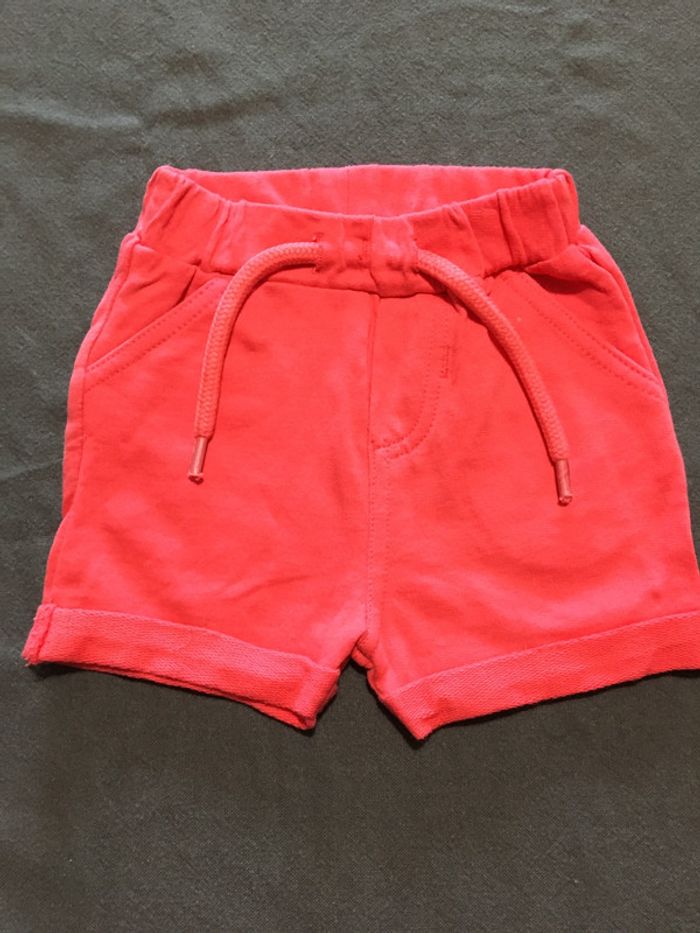 Lot de 2 shorts, l’un en coton rose, le blanc en lin. Taille 3 mois