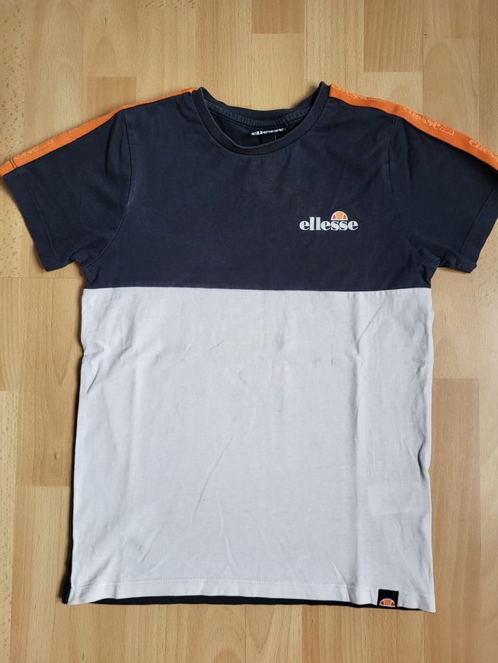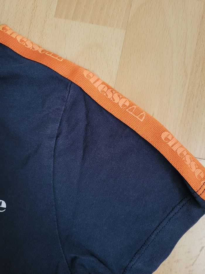 T-shirt manches courtes Ellesse bleu marine et blanc bandes orange 10 / 11 ans - photo numéro 1