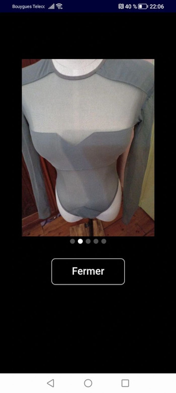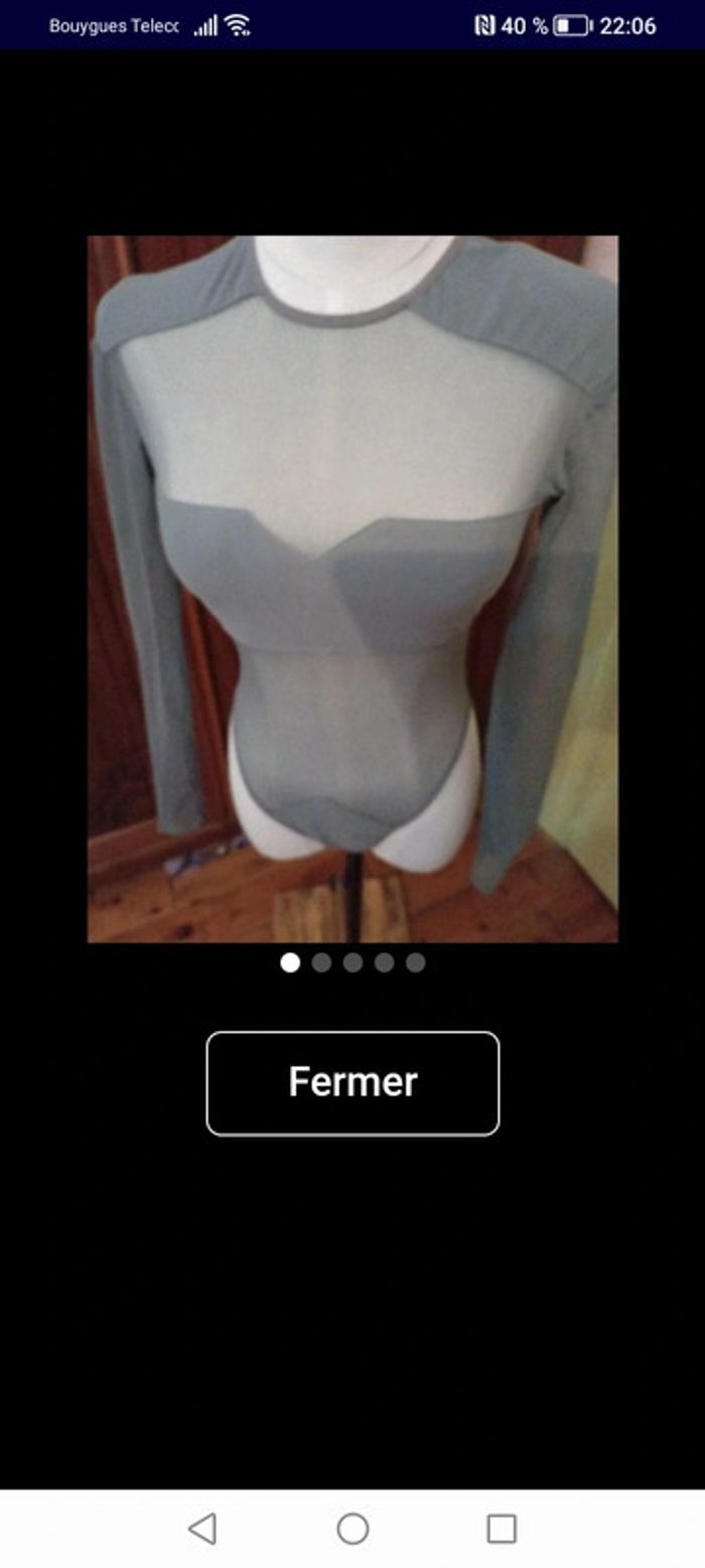 Body à manches longues Transparent façon résille Col rond Épaulettes Se ferme par trois petits boutons Plus d'étiquette de taille et de composition Correspond à une taille 36 #hautfemmeT36eilsel0 Coloris : gris