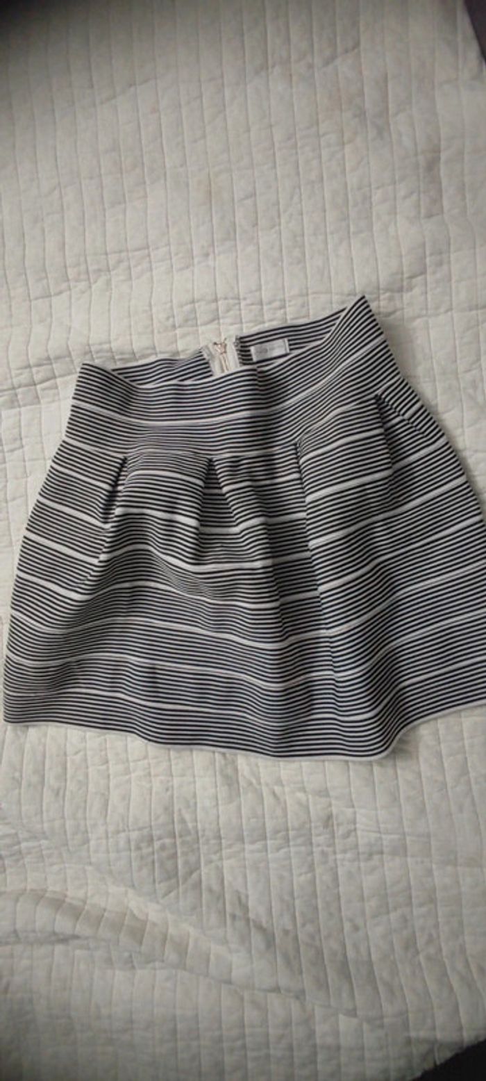 Jupe rayée noire et blanche, marque Cache-cache, taille 38, en très bon état