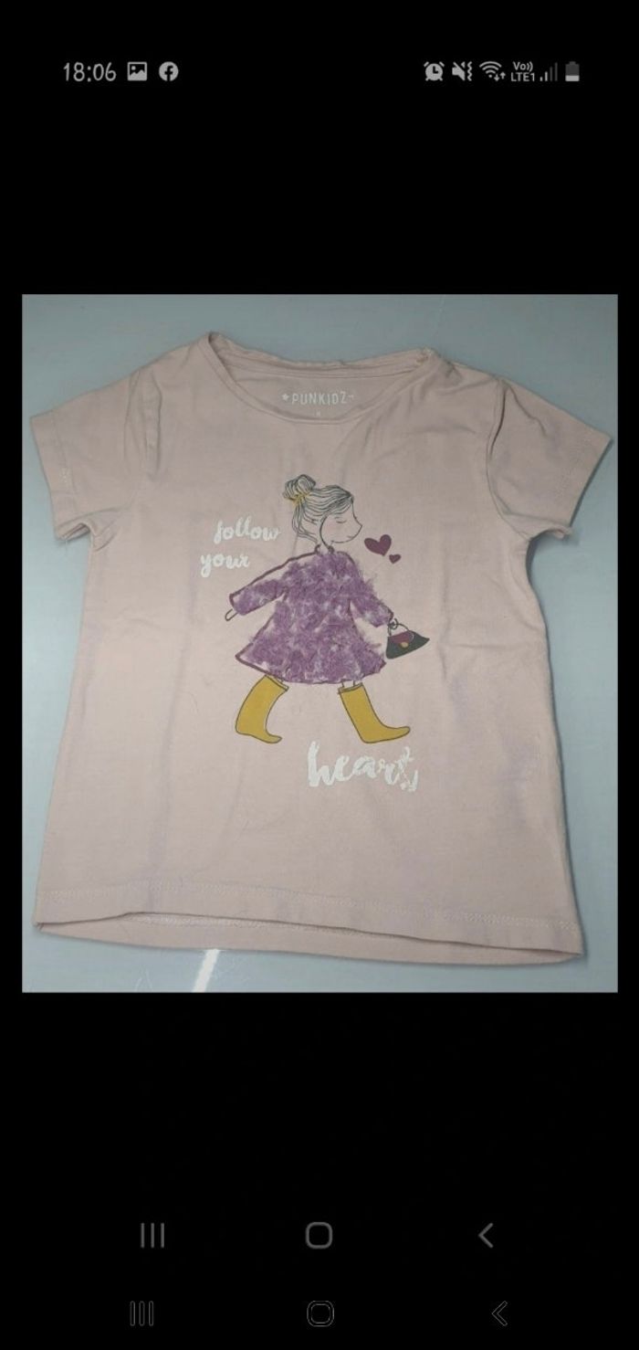 Lot de 4 tshirt manche courte 1 tshirt manche longue 1 robe été Zara, punkids, lemon béret, kiabi
