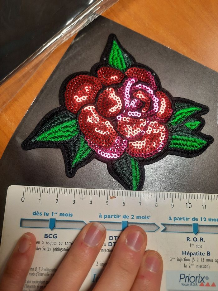 Déco patche thermocollant broder fer à repasser ecusson très grosse rose sequin