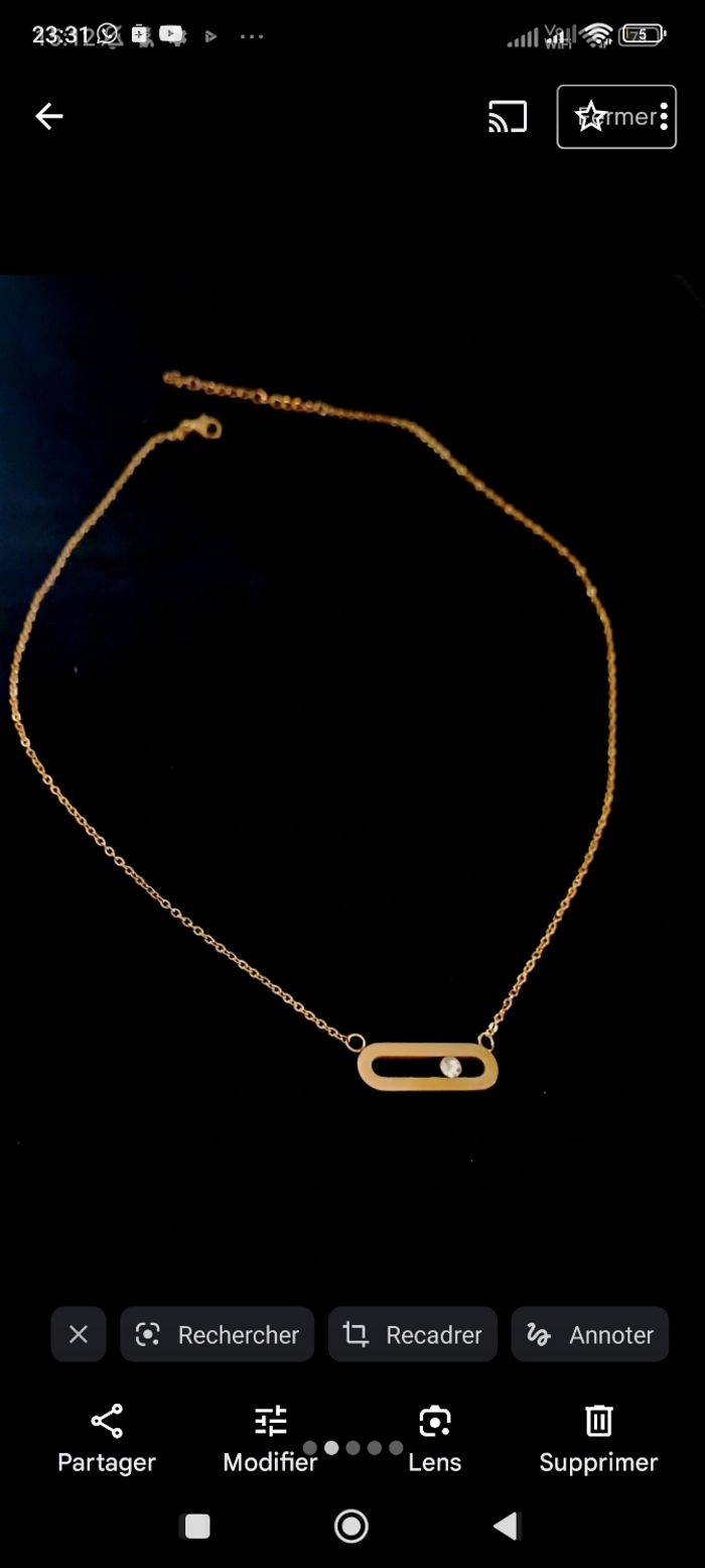 Vend collier placage plaqué Or 18k Neuf en Acier inoxydable collier ovale avec strass bijoux haute gamme qualité irréprochable ne ternis pas ne rouille pas dimensions 40cm avec 5cm extension.colorid doré