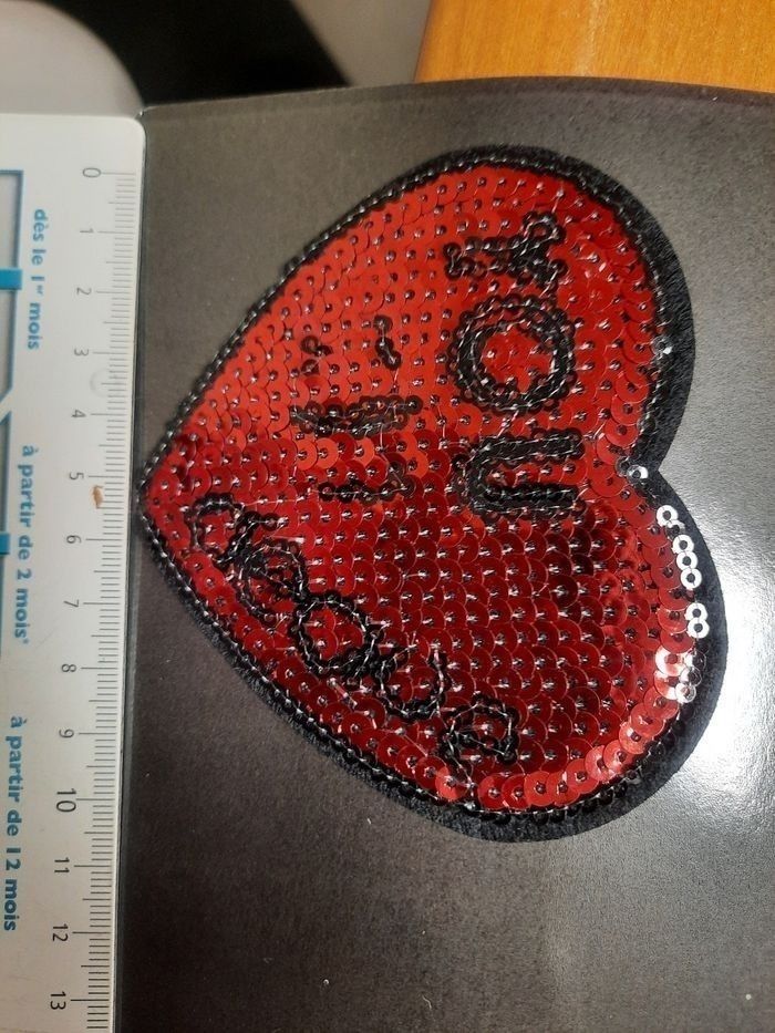 Déco patche thermocollant broder fer à repasser ecusson cœur rouge perles sequins brillante