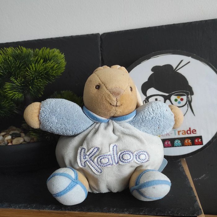 Doudou Kaloo Lapin Peluche Boule Marron Bleu Blanc  #geektradedoudou - photo numéro 1