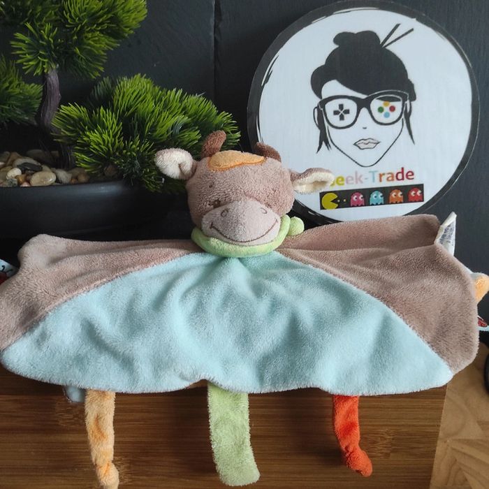Doudou Nattou Vache Marron Bleu Orange  Bandana Vert #geektradedoudou