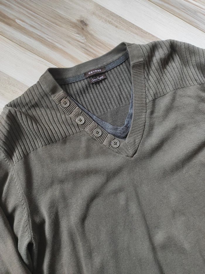 Pull fin col v kaki Devred Taille M Très bon état 100% coton Largeur d'aisselle à aisselle 48cm Longueur 66cm