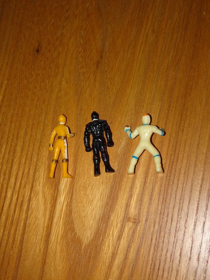 3 petites figurines soldats power rangers, en très bon état, plastique dur, 4 cm.