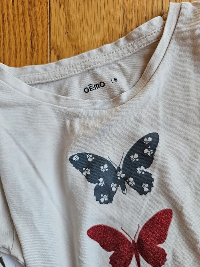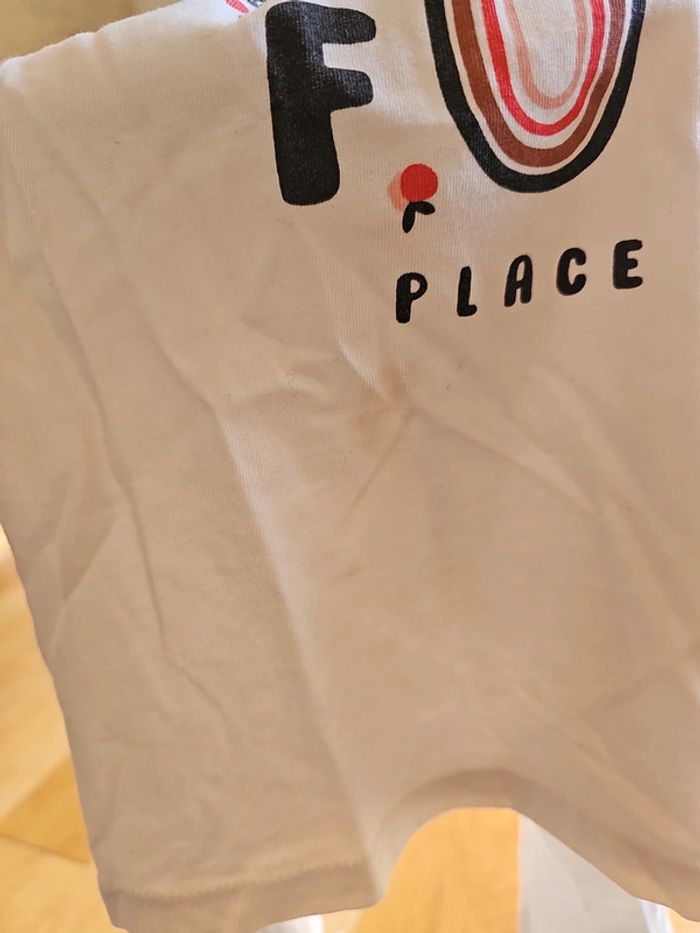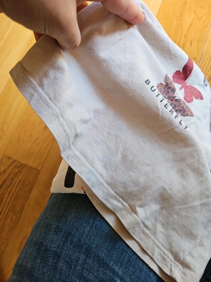 Taille 6ans Wonderful = blanc légère tache sous le "P" Papillons = beige légère taches bleues en bas du t-shirt