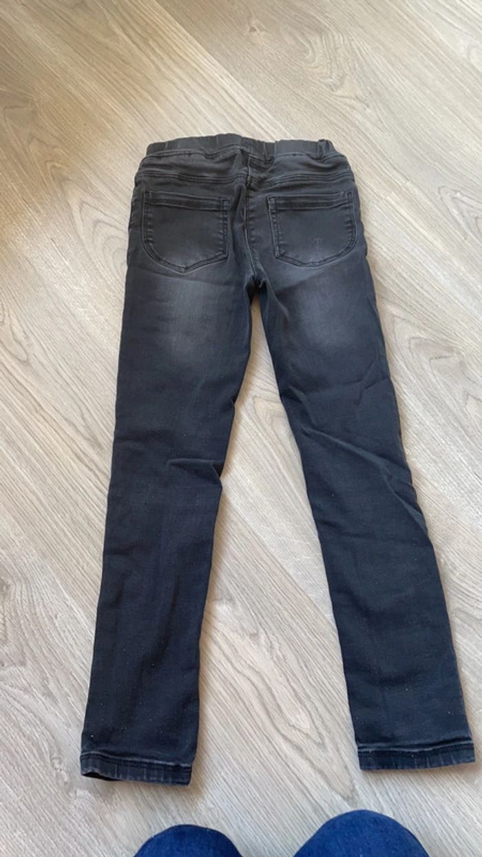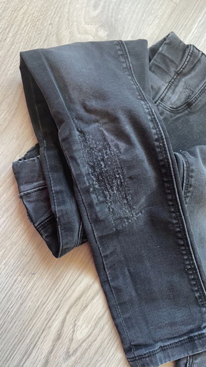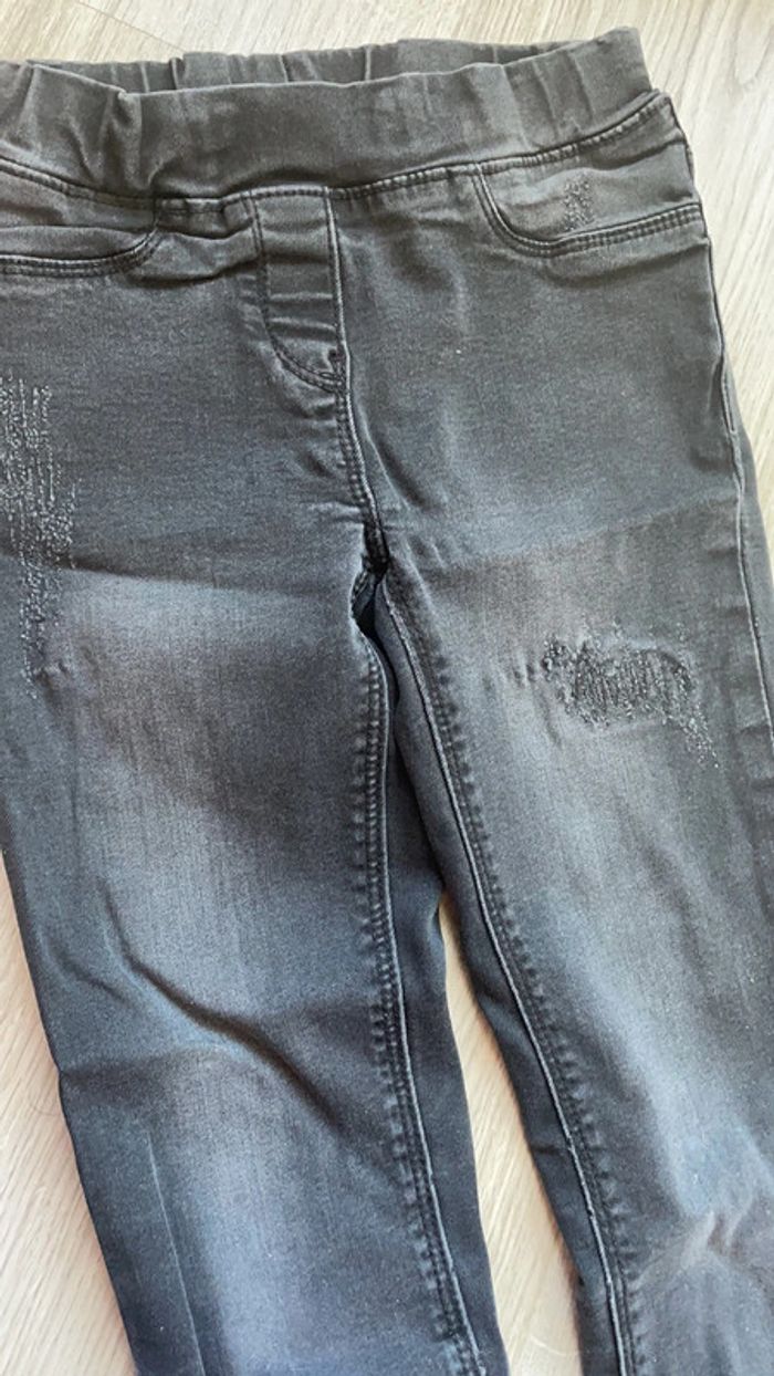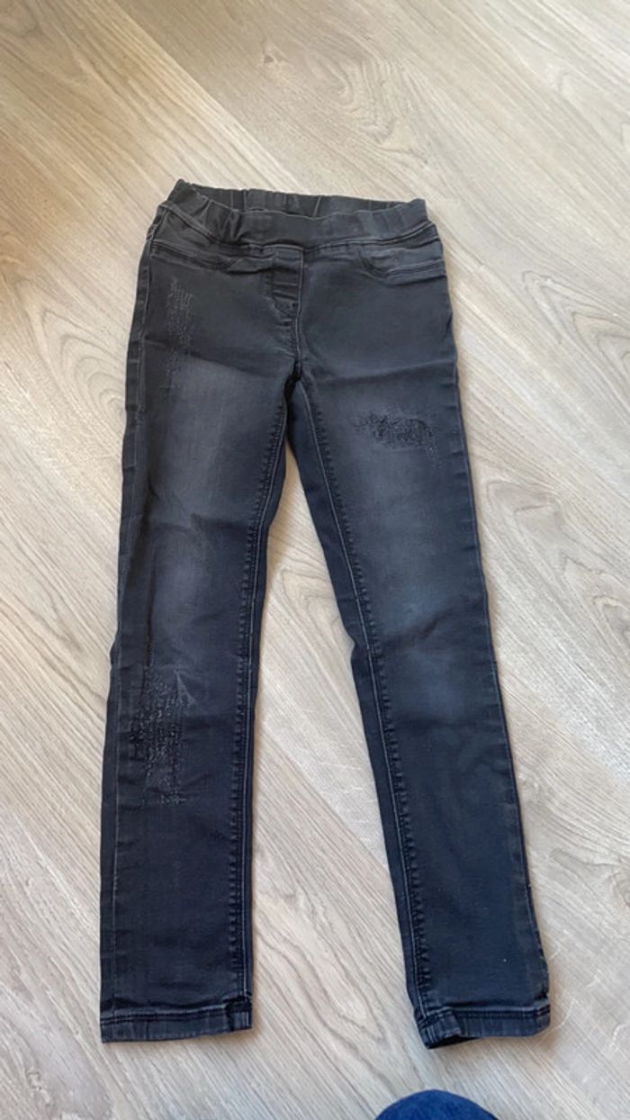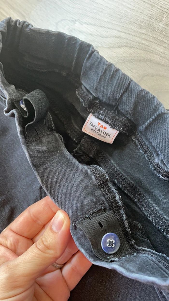 Taille réglable par elastique, sans trou ni tache l’effet griffé/usé du jean est normal (acheté comme tel neuf) #tinesha2fille8ans