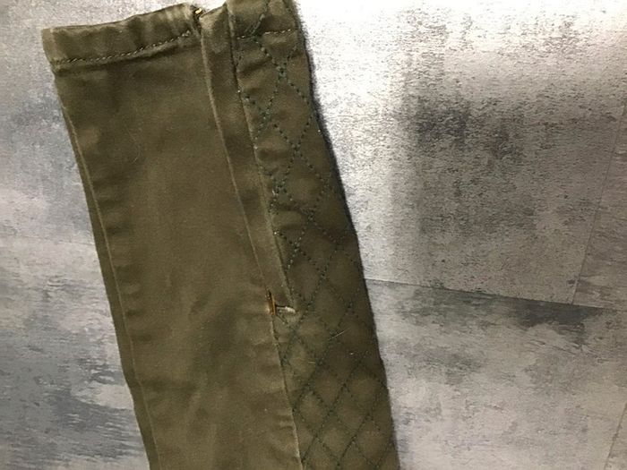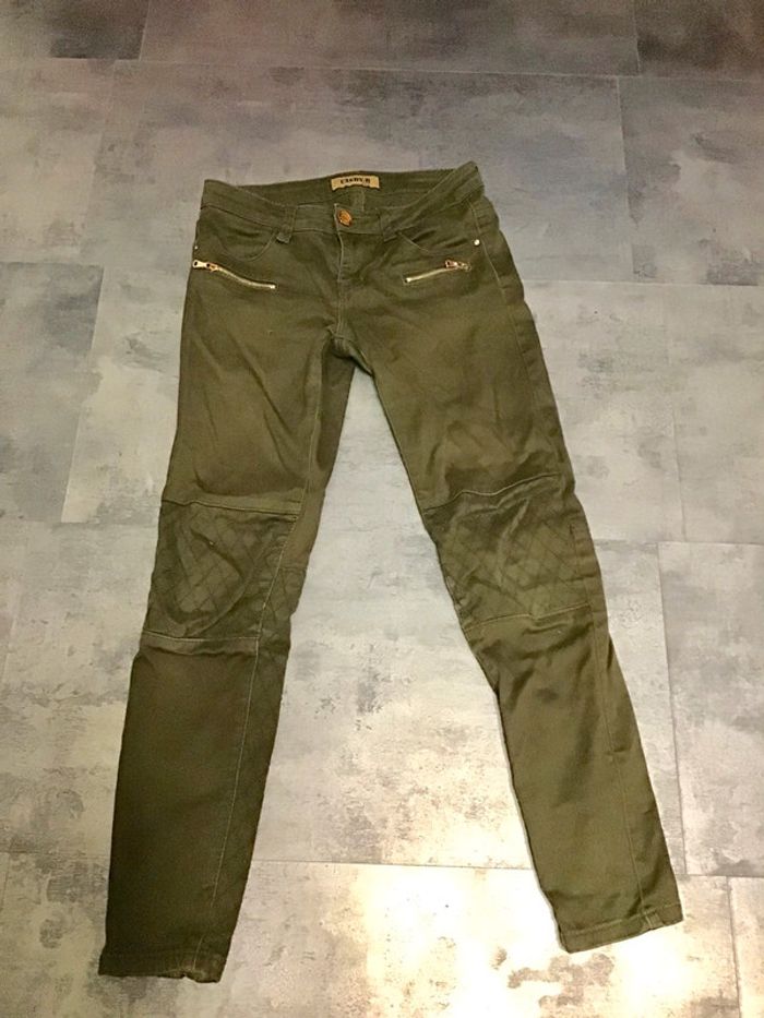 jean kaki fronces au niveau des genoux fermeture éclair en bas de chaques jambes