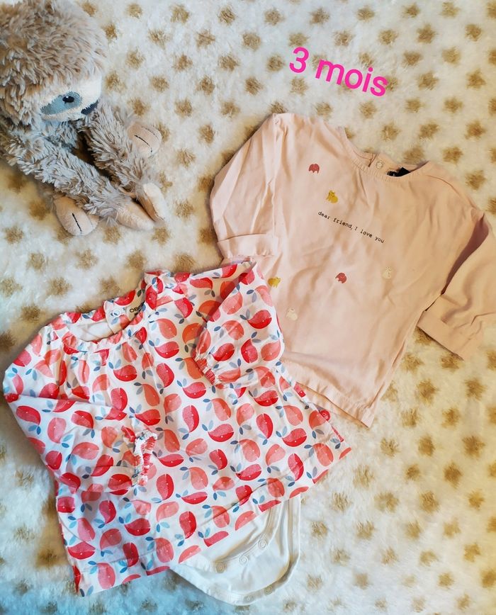 Lot de 2 hauts manches longues Taille 3 mois Un haut okaïdi avec body intégré Et un Kiabi Très bon état