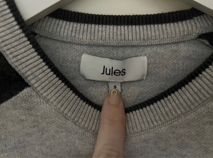 Pull Jules en parfait état. Taille: S. Couleur: gris, manche noir. Très peu porté.