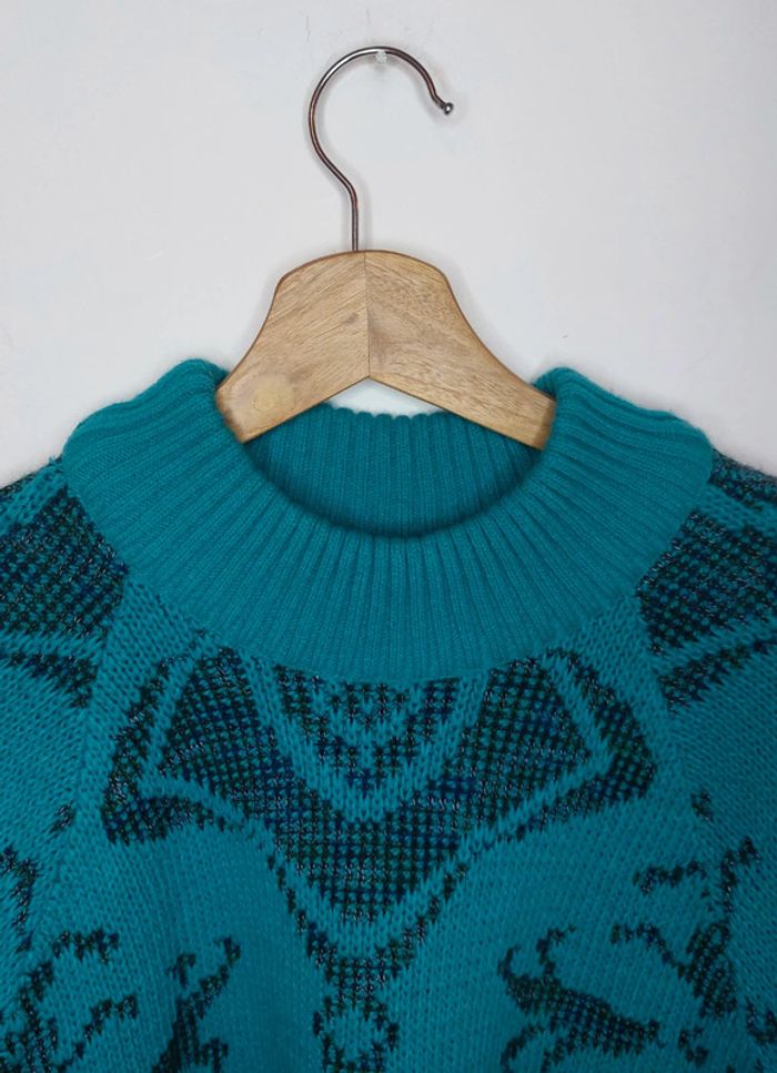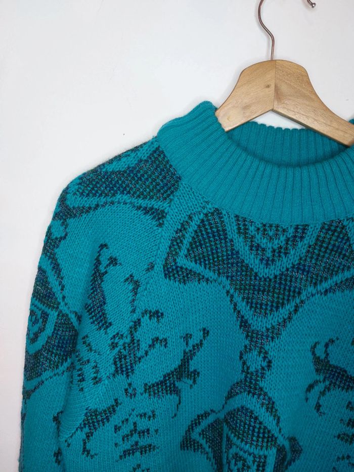 Pull bleu vintage manches longues à motifs - photo numéro 6