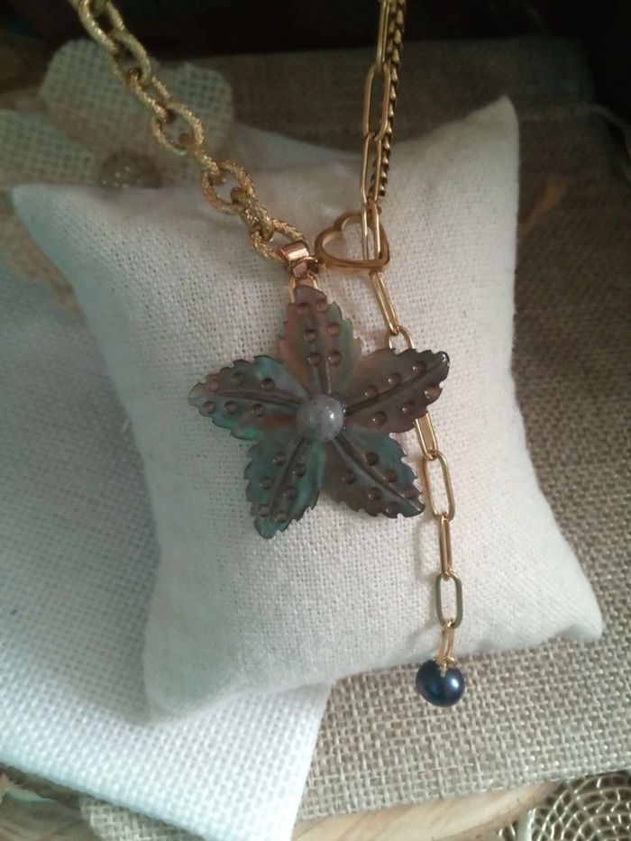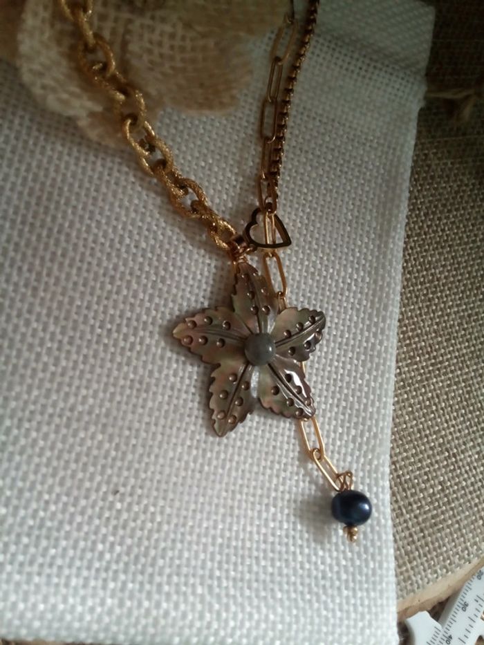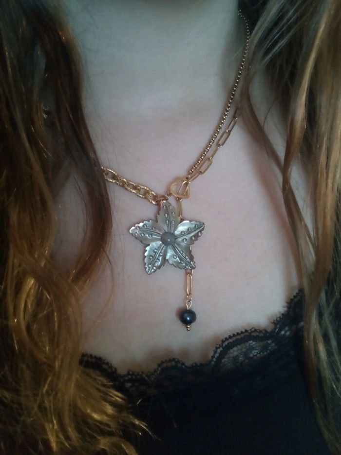 Collier fleur de n'a'c'r'e et perle d'eau douce naturelle noire - photo numéro 4