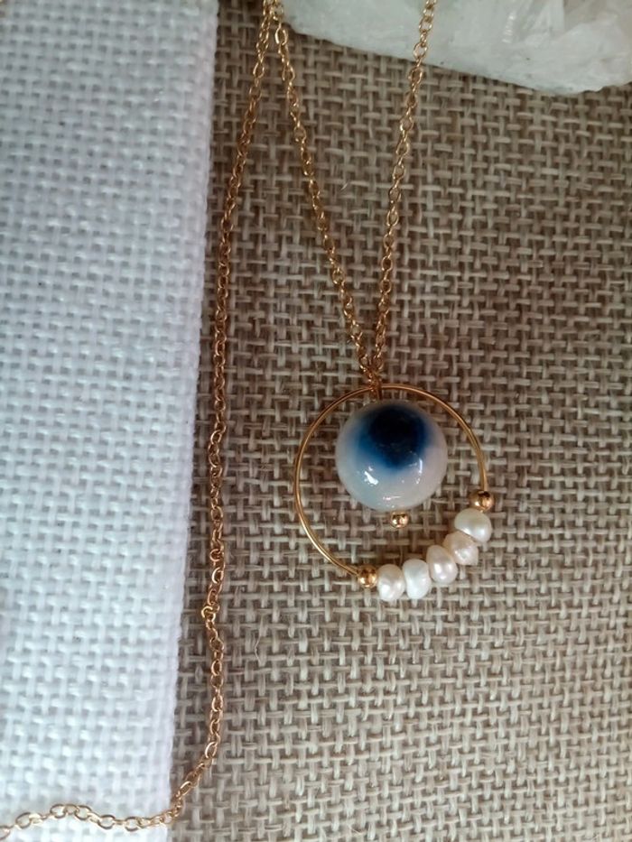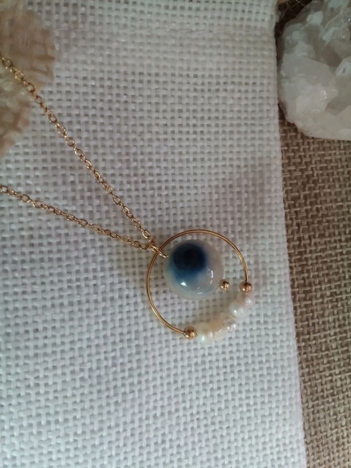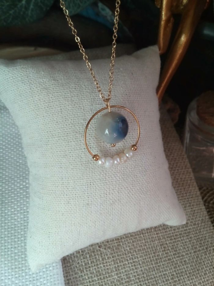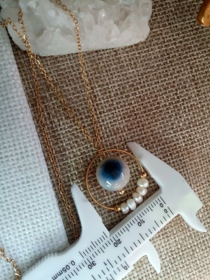 Collier pierre de dumortiérite et perles d'eau douce naturelles - photo numéro 1