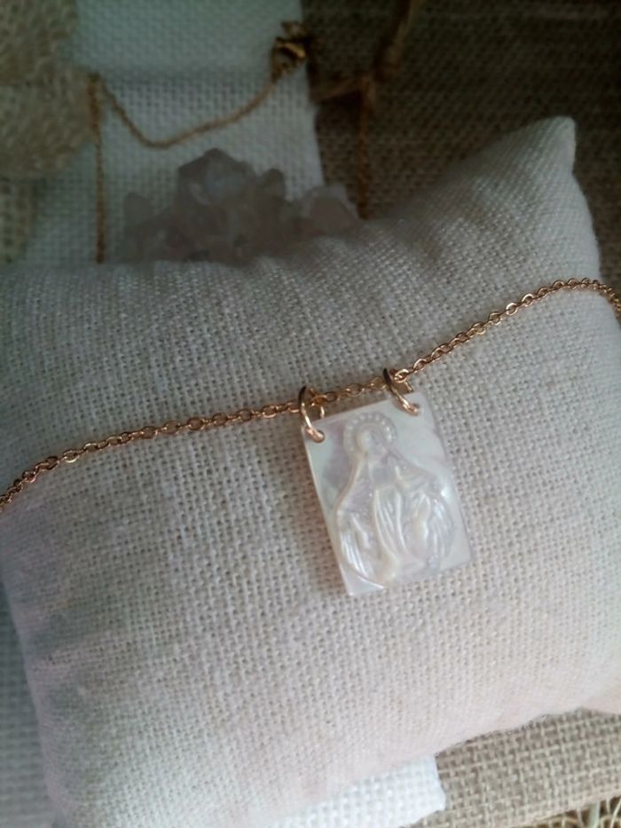 Collier pendentif de n'a'c'r'e naturelle sculpté