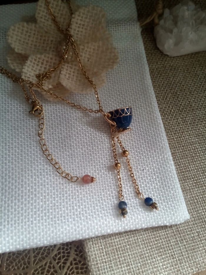 Collier tasse bleue et pierres de lapis lazuli - photo numéro 1