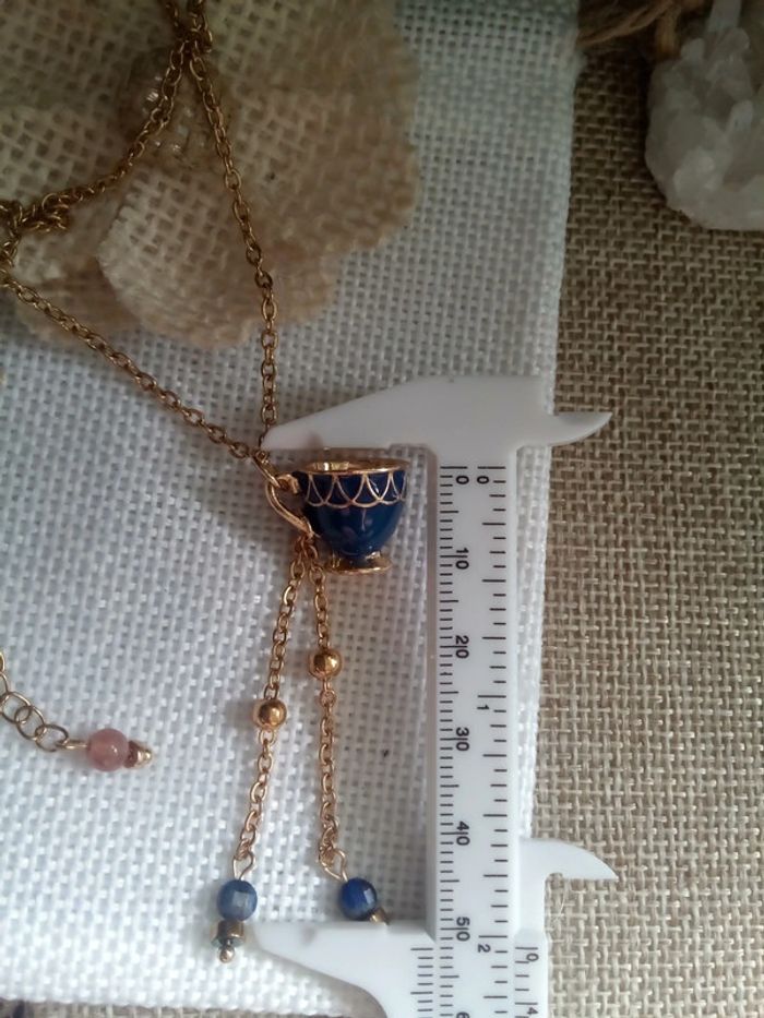 Collier tasse bleue et pierres de lapis lazuli - photo numéro 3
