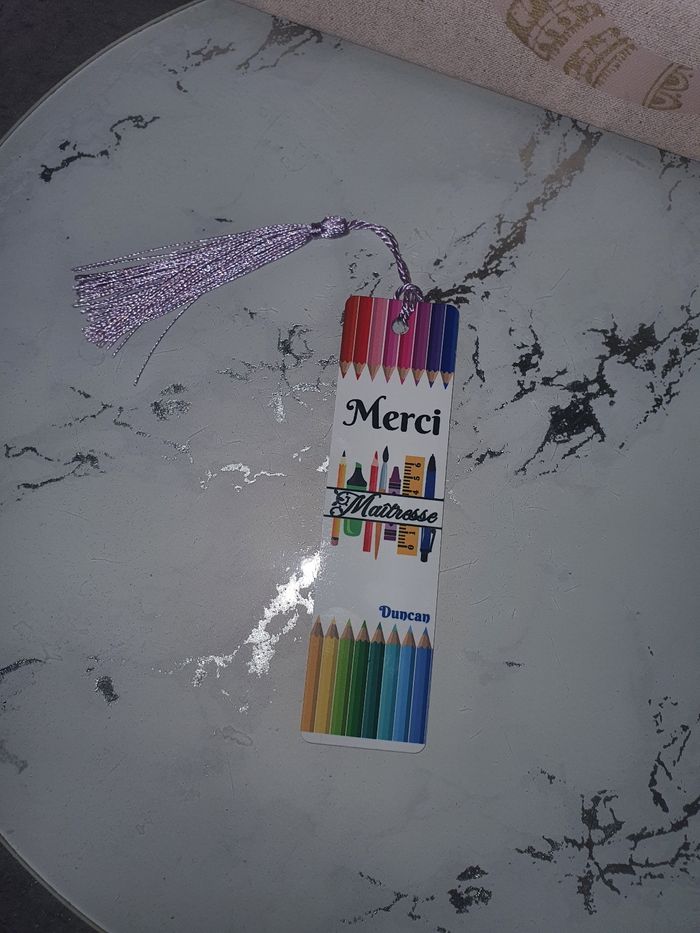 Marque page merci maîtresse avec le prénom de votre enfant. Privilégier shop2shop