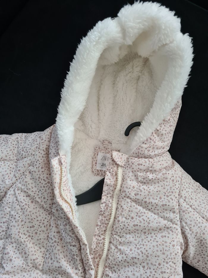 Combinaison/Manteau bébé fille En nylon/fausse fourrure Marque : Zara Manches et pieds amovibles Couleur écru/beige État : Très bon état Taille : 6-9 mois (74 cm)