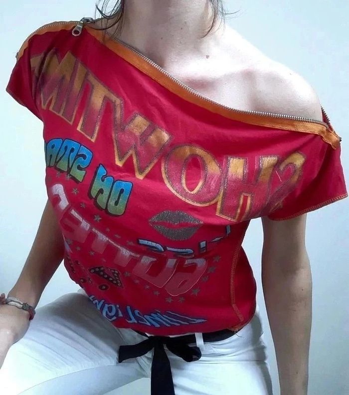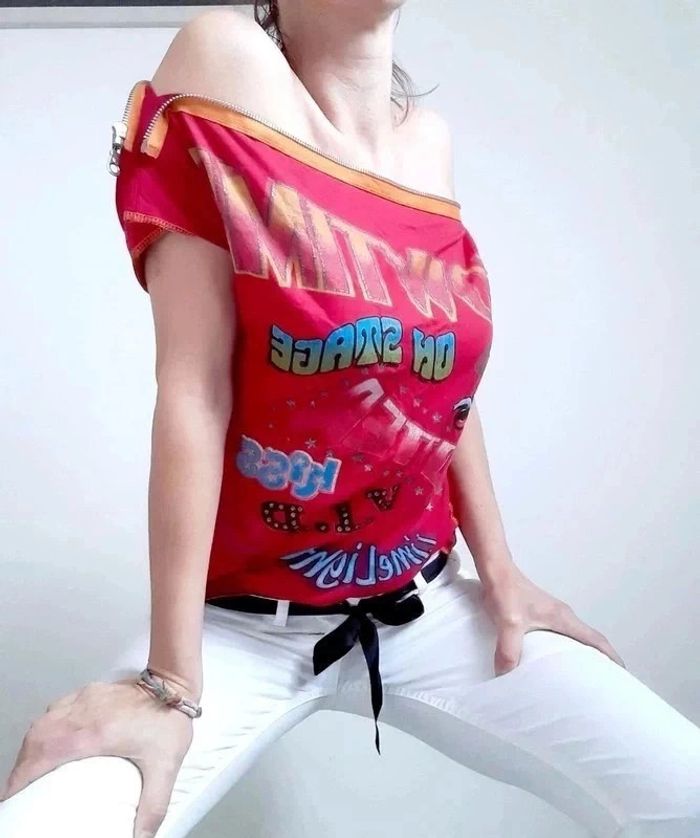 Haut vintage très original L écriture légèrement usé voir photo Réduction sur lot faites vous plaisir !!!!!